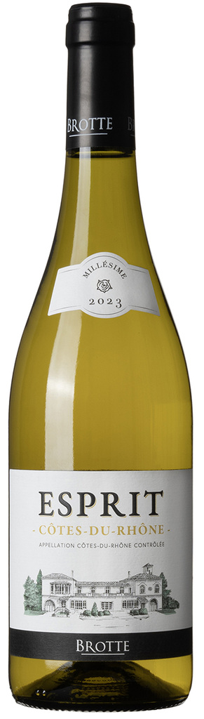 I Brottes Esprit White blandas grenache blanc med viognier och clairette som tillför blommighet och kropp. Druvorna har pressats försiktigt i en pneumatisk press under lågt tryck. Musten har fått kallsedimentera över natten vid en temperatur på tio grader. Därefter har den fått jästa på ståltank vid 16–18 grader. Vinet har sedan legat på sin fällning i sex månader med regelbunden omrörning innan buteljeringen som sker under våren året efter skörd.