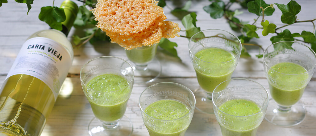 En god kall gazpacho som passar utmärkt både som lunch och förrätt som är enkel att göra. Tillaga den gärna dagen innan så den får stå i kylen över natten så blir den ännu godare. Pamersanchipsen kan även användas endast som tilltugg. Smaklig spis!